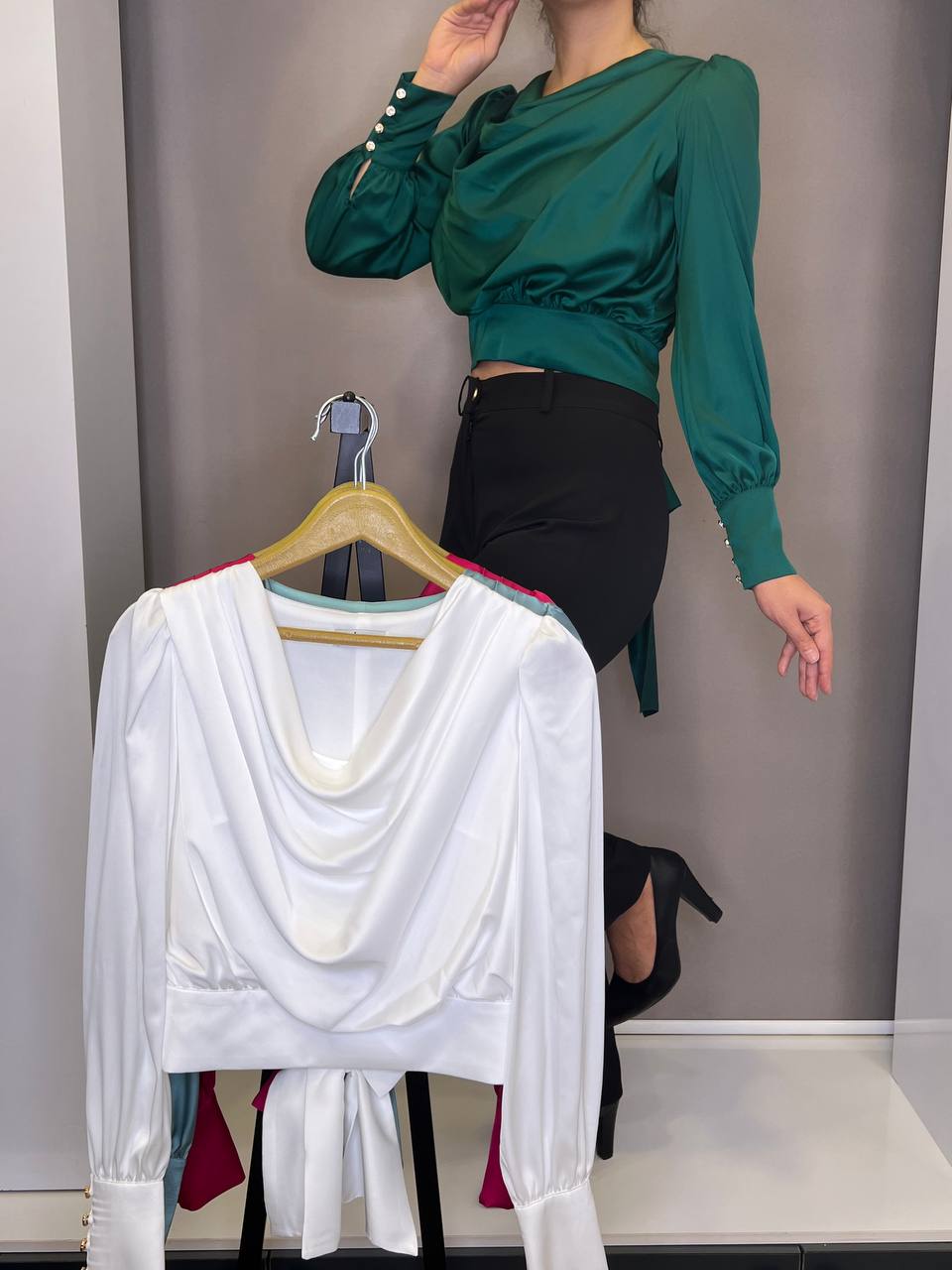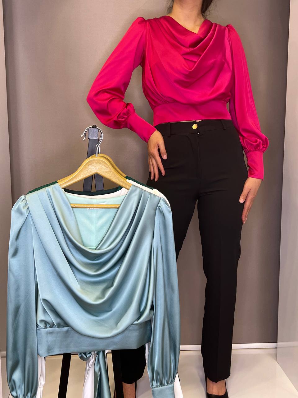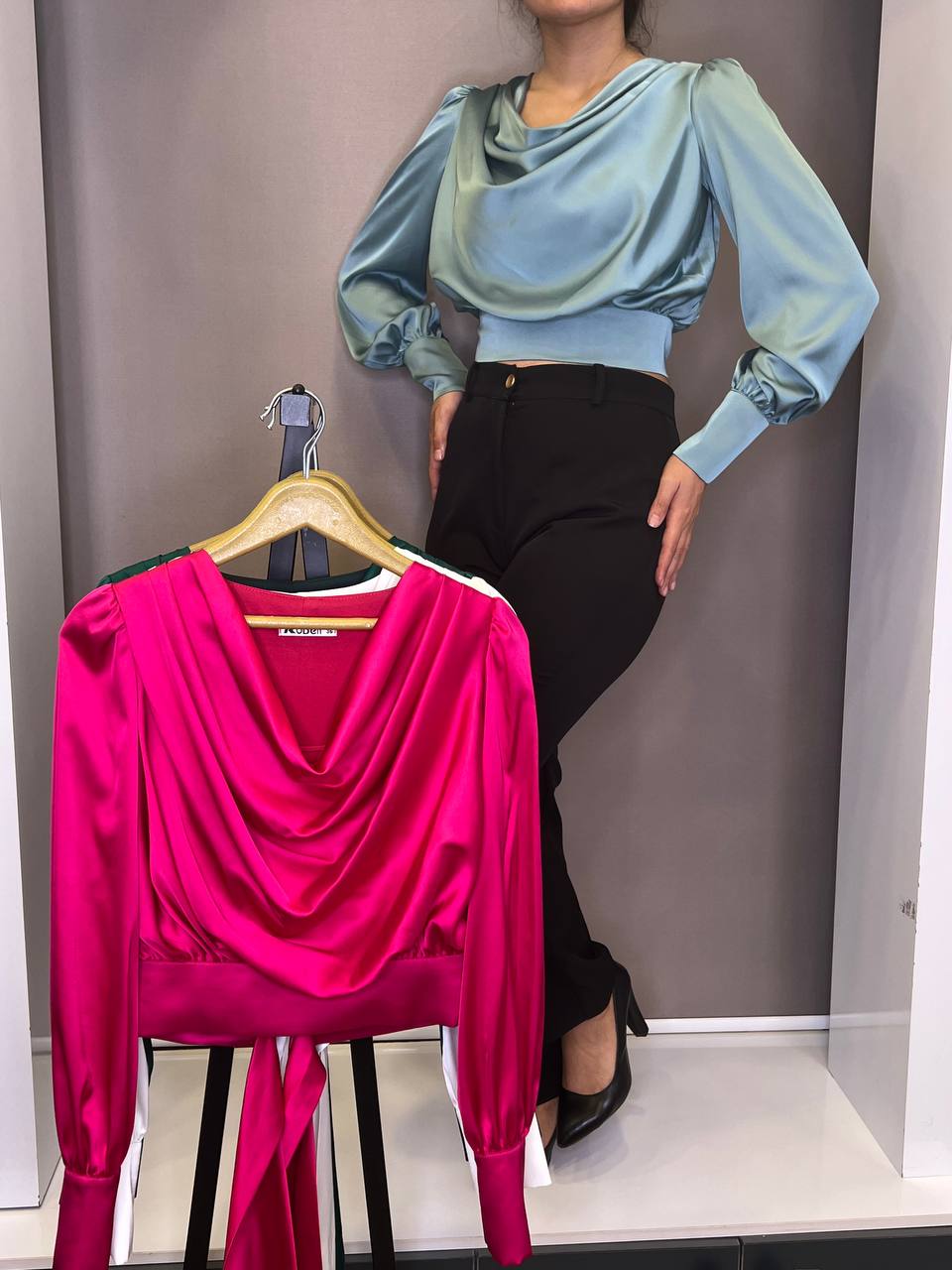 شومیز ساتن یقه آبشاری