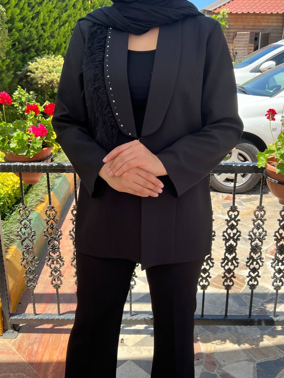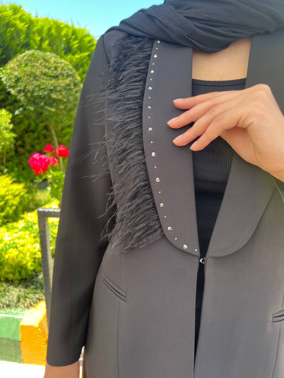 تک کت مجلسی مزونی یقه پر به همراه نگین